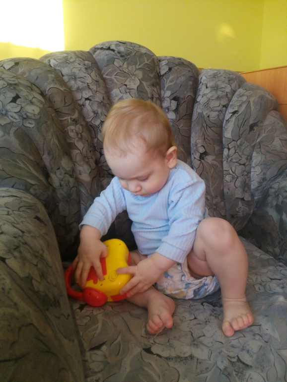 Довольно быстро пришла посылочка! Подгузничек нам достался беленький с сине-голубой расцветочкой, специально для мальчика. Наощупь прекрасная ткань, мягкая, гладенькая. Четыре кнопочки для застегивания, две слева и две справа. Самое интересное в подгузнике - способ крепления его вкладыша! Сам вкладыш двуслойный, слой потоньше и потолще, удобный. Мы привыкли, что вкладыш либо вставляется внутрь подгузника, либо кладется на манер прокладки. Этот вкладыш кладется как во втором случае, но при этом крепится на 2 кнопочках! Что разумеется очень удобно, потому что вкладыш намертво прикреплен к подгузнику и не может съезжать! Когда ваш малыш при переодевании постоянно двигается и пытается уползти/убежать, одевание подгузника превращается в сложную работу, и если вкладыш просто положен как прокладка, в процессе одевания он тоже норовит сбежать! После одевания данного чудесного подгузника мы сверху обычно одевали штанишки из мериноса от Little Pirate, ибо как и все тканевые подгузники, после 2 пописов он протекает. В штанишках такой проблемы конечно же не было. Подгуз мокрый, а в штанишках ничего не течет. В среднем подгузника нам хватало часа на полтора, иногда на два (но при двух часах он разумеется был сильно мокрый, сынишка мой кушает и писает обильно). После нескольких стирок ткань немного подсела, мы уже не можем застегивать на все четыре кнопочки, застегиваем на две, да и попа я так думаю подросла, нам уже 11 месяцев. Но все равно подгузник остался классным и очень любимым, пользуемся им каждый день и очень всем рекомендуем!!!!!!! Мне лично этот подгузник понравился больше, чем подгузники Little pirate.