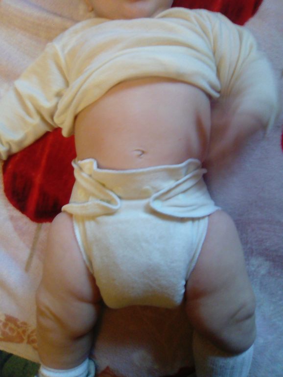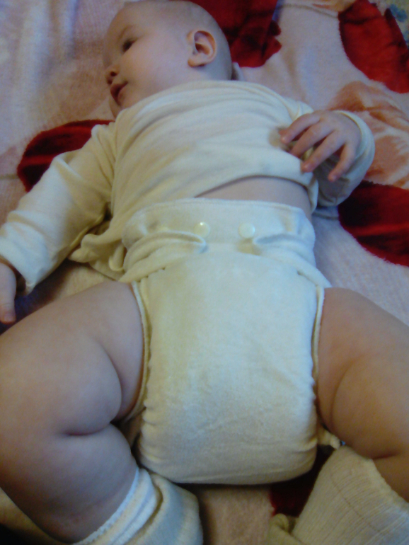 А теперь ночной подгузник из бамбука-в нем 4 слоя во впитывающей зоне+4-х слойный вкладыш ,который крепится на кнопки спереди