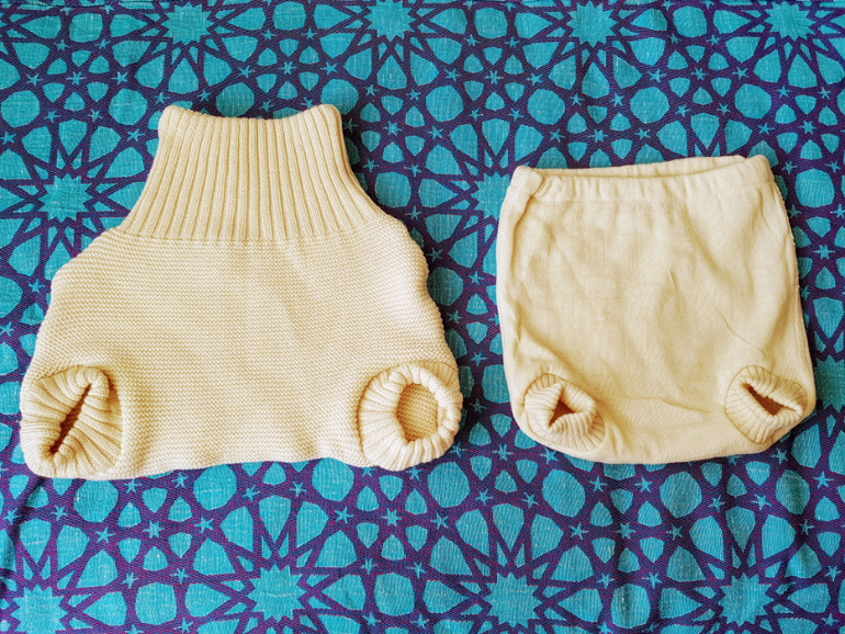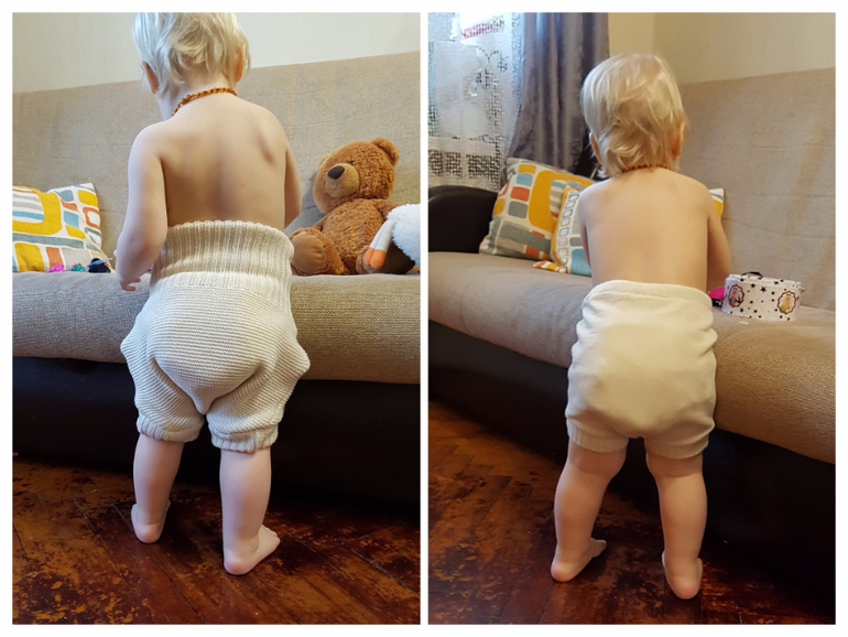 Отличные эластичные штанишки. Каждые по-своему хороши. На резинке можно надевать под одежду на выход и не будет большого объема, а с широким поясом на ночь, сооружая под штанами нужный по впитываемости "бутерброд". Но на резинке подойдут стройным малышам, а с высоким поясом более крепким.