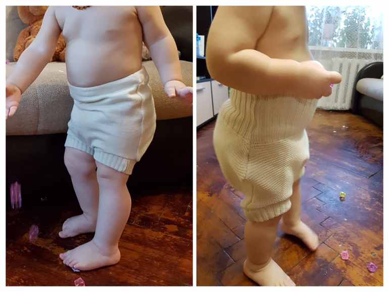 Читая отзывы и мнения я сделала ставку, что Наппи шерсть поменяли и теперь штанишки более элластичные. Это действительно так, но есть одно НО.Так уж получилось, что и моей приятельнице/искусительнице/единомышленнику Оле Оля тоже потребовались пеленальные штанишки, и она также остановила свой выбор на Наппи, но уже на двойных с высоким поясом.