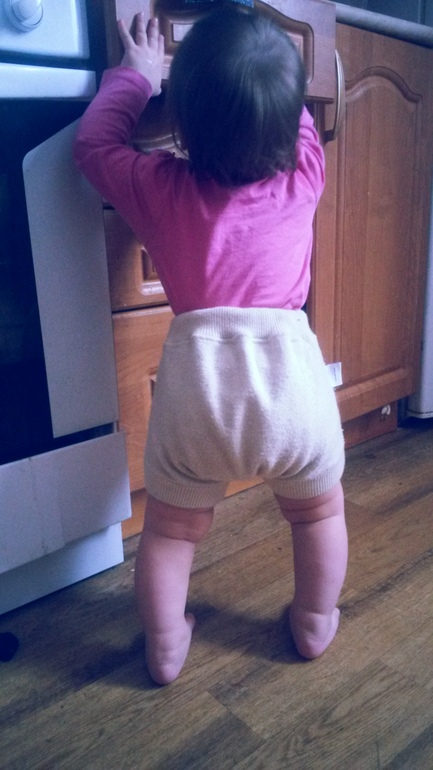 В шерстяных штанишках на подгузник не мокро, а чуть влажно и тепло, я проверяю.