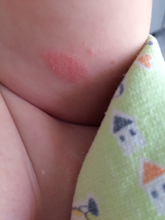 Советы новичкамДевочки, привет! Сыну 2 месяца, со 2-й недели в МП, в основном только органика и шерсть. Вчера появилась вот такая бляшка на внутренней стороне бедра. Ничего нового вроде не было, разве что за день до этого много раз дома использовала фланелевый префолд. Мне напоминает АД, но как-то рано и место такое, может натерли? Ещё за пару дней до высыпания вкладывала самовяз вкладыш из шерсти мериноса. Может на него реакция? На ночь надевала ОП, лучше не стало, меняю сейчас подгузники после каждого пописа и шерсть не надеваю. До этого бывала красная попа от био муслина, если его долго не меняли и пару раз подряд носили, но обычная потничка и все за день проходило, а тут прямо бляшка.