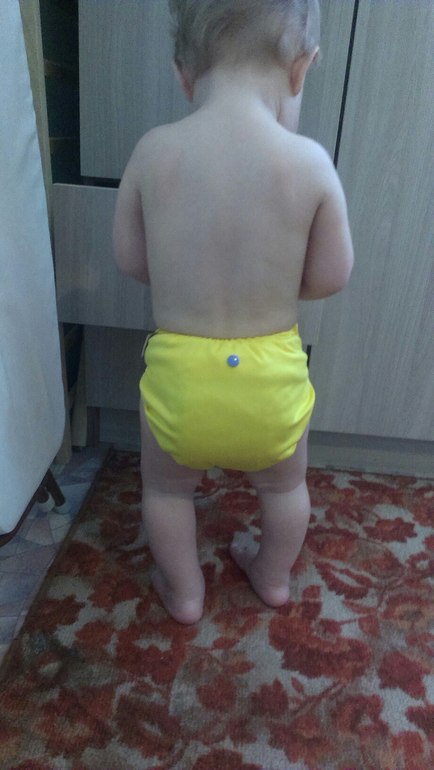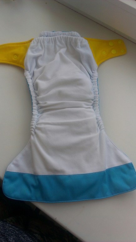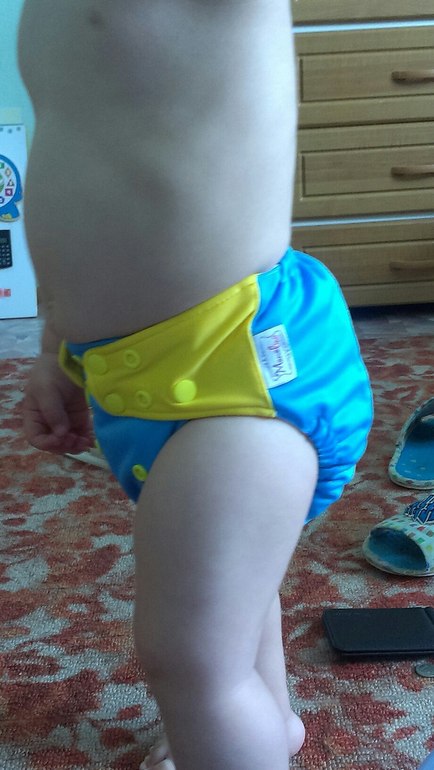 Теперь про обложку. Посадка и материал очень удивили, так как у предыдущей нашей обложки был не такой пул, этот со стречем, что немало важно! Плилегает очень плотно по спинке, животу и ножкам. Ничего не протекает. Вкладыш от нее мы не брали. Носим либо на подгузник либо вайзовскую коноплю ставлю на кнопках-подходит очень! И к телу стей-драй. Одевать и снимать как трусики у нас не получается( Материал пул действительно очень качественный и не протекает, как-то долго гуляли и вкладыши оооочень промокли, обложка снаружи осталась сухая.