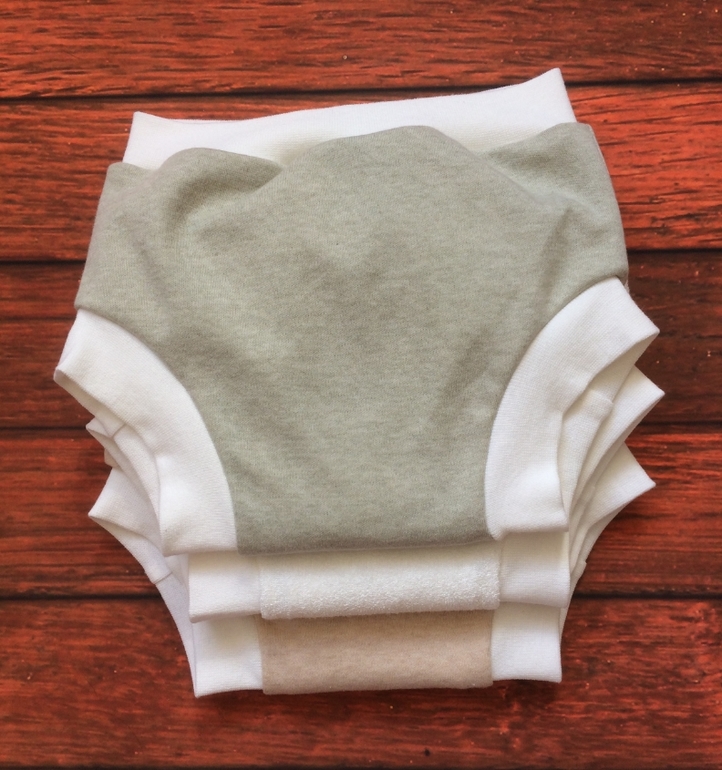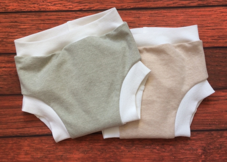 Первые: Моя любовь! Пул очень нежный, эластичный, тоненький и дышащий. Это ламинированный органический хлопок в двух расцветках - светло-зеленый меланж и бежевый меланж. Трусики весят всего 80 грамм в размере от 6 мес до 1,5 лет, при этом хорошо впитывают. Не стесняют движений ребенка и отлично сидят из-за того, что они не объемные. Сыну ничего не мешает учиться садиться, ползать и вставать. Внутри интерлок качества пенье, 100% хлопок и вшитый вкладыш из микрофибры (при наименьшем объеме микрофибра впитывает лучше всего).