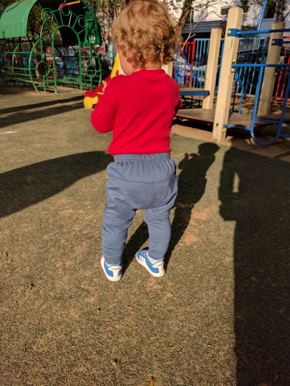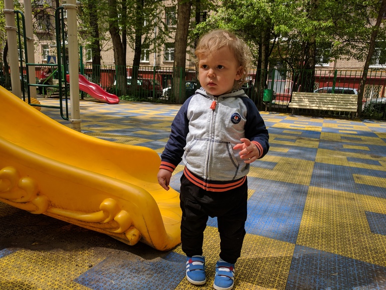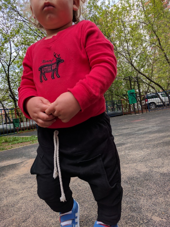 Хороший крепкий пацанчик, у меня такой же! Наконец пираты старые фланелевые стали впору, а ещё в год были малы и не застёгивались на последние кнопки) Просто вытянулся. Штанцы хорошие) И площадка