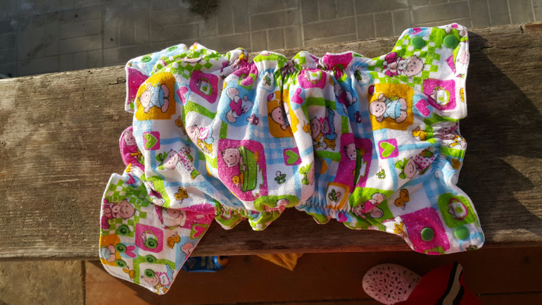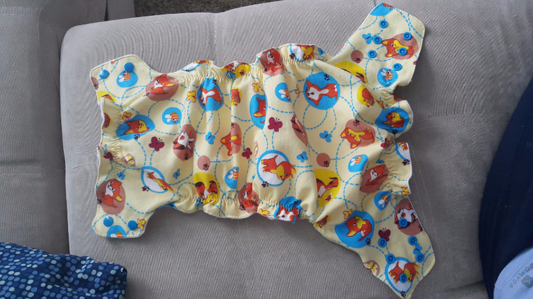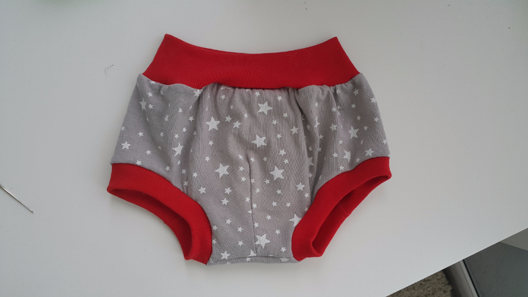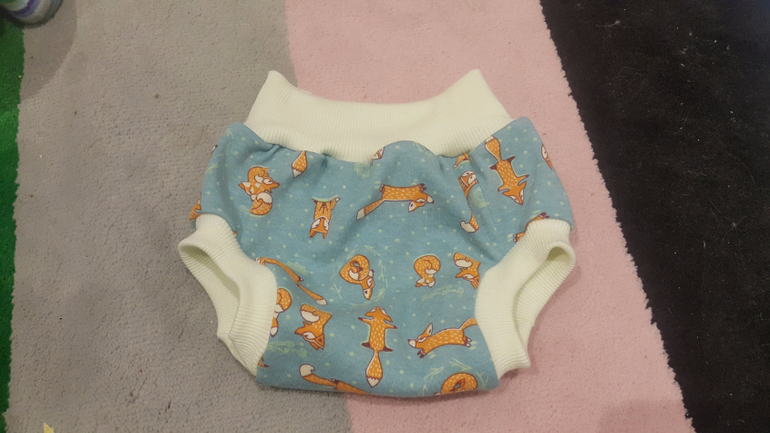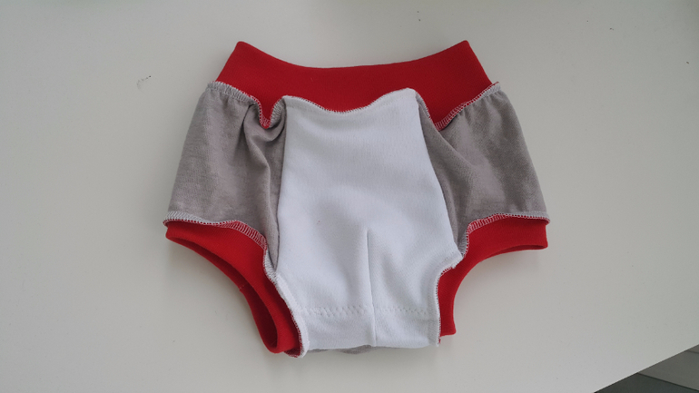 У меня быстро не получается, часа полтора на один подгуз уходит. Тут тоже готовая выкройка с инета. А вот трусы, хипстеры получаются, а с вкладышем вшитым хрень выходит, постоянно велики выходят и сваливаются с нашего тощего зада. Может надо фуллайкру брать и микро трусы ему шить... Вот вчера сшила, но не очень они (а я остатки тканей на трусы трачу):