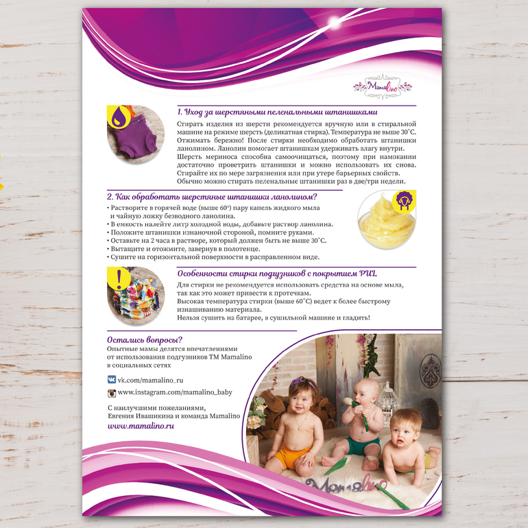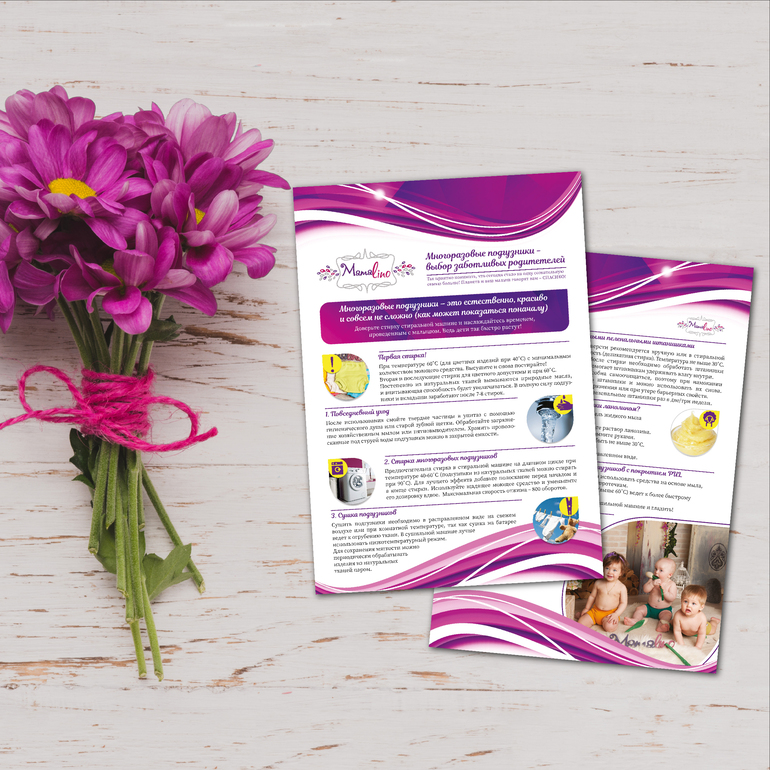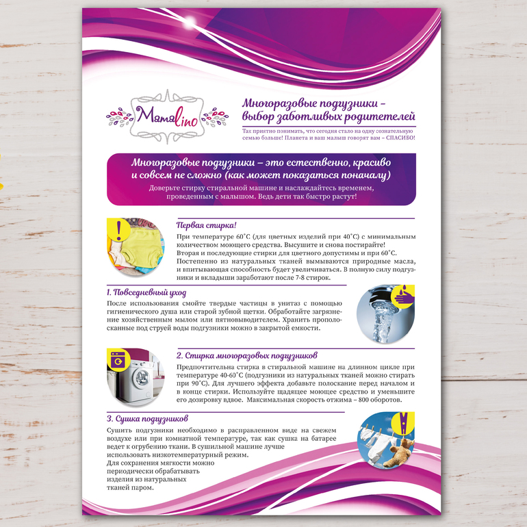 Уход за подгузниками.Хочу вам показать листовку Мамалино о том, как правильно стирать многоразовые подгузники. Мой макет, как дизайнера. И мой вклад в содержание, как мамы Макара, растущего в МП) Получилось красиво и полезно!