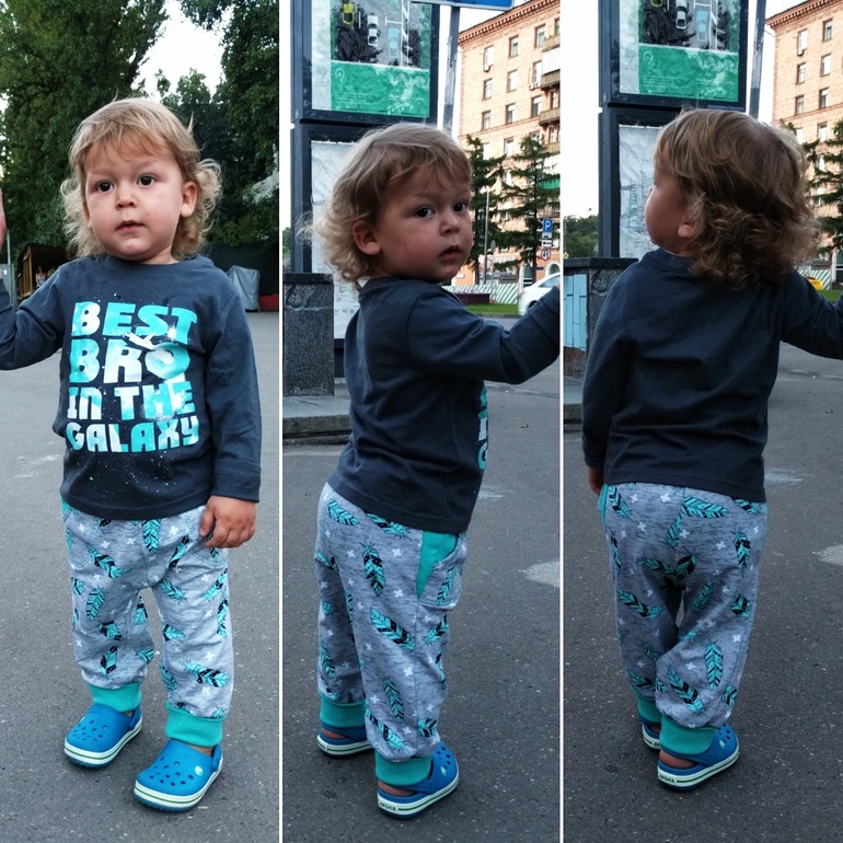 Обновочка! (обсудим новую покупку)У Макара крутые штаны! Их для нас сшила Светлана Полякова . Чуть позже похвастаюсь ещё и своим свитшотом из такой же ткани. Будет у нас с Макаром family look)))). Красивые и удобные штаны, широкие - на наши многоразовые подгузники. Большое спасибо за такую красоту!