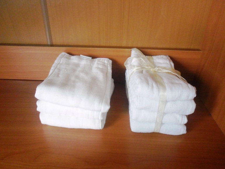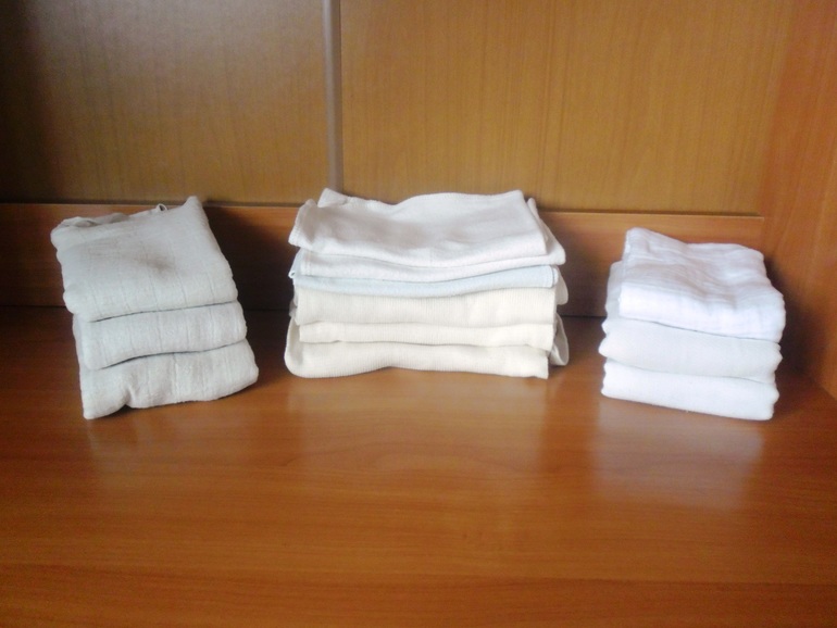 2. 3 комплекта disana (подгузник+био-марля+био-байка), два муслина babyidea и 1 муслин jollein. Дисану взяла на пробу, т.к. это классика и я не могла не заиметь её себе в коллекцию, хотя к завязкам душка как-то не лежит.