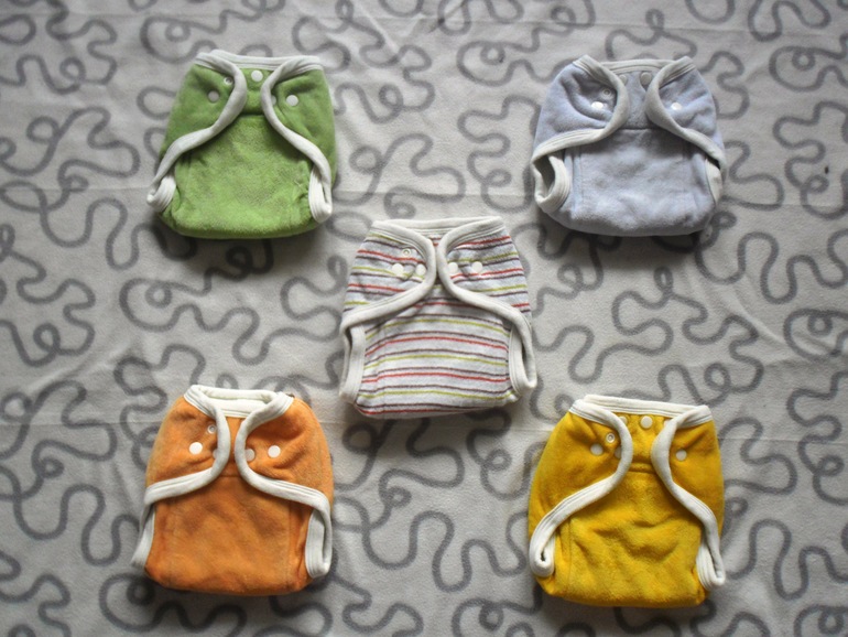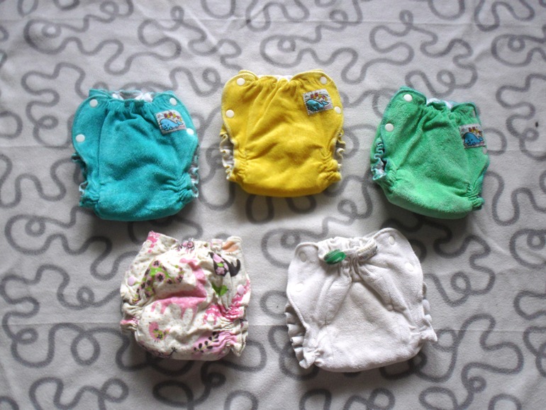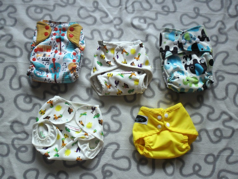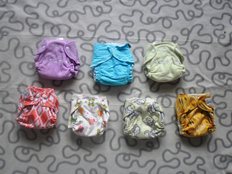 Нижний ряд: 4 aio - nickis diapers, 2 imagine (с флисом и с бамбуком) и grovia.