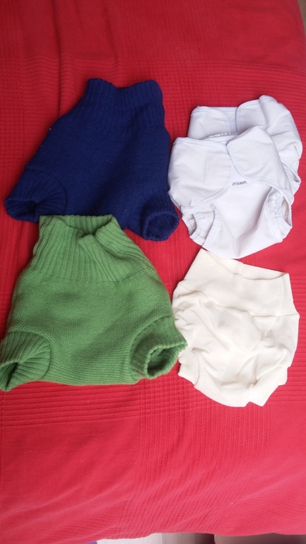 Но одних штанов мало, а на малышей у меня ничего не было, поэтому я купила б/у ещё двое из pul (popolini wrap S) и двое шерстяных (disana 62/68).