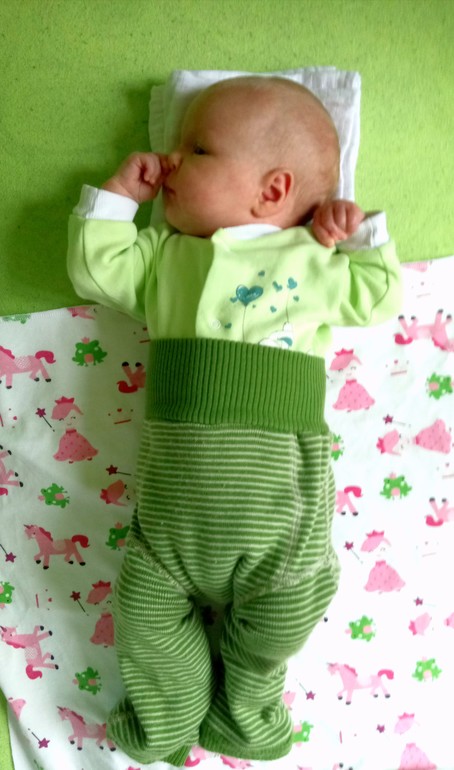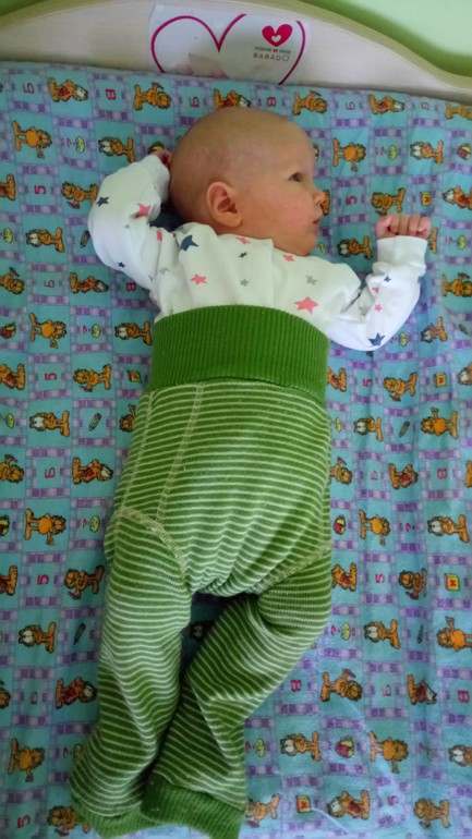 Ещё у меня припасены штанишки storchenkinder. Вот этого добра у меня аж три штуки (все три вида). Тренировочные в размере 86-92 ждут своего часа, пока даже как пеленальные велики, особенно в ножках, так что их показывать не буду, а вот до пеленальных во втором размере, купленных у Марии, мы доросли:)