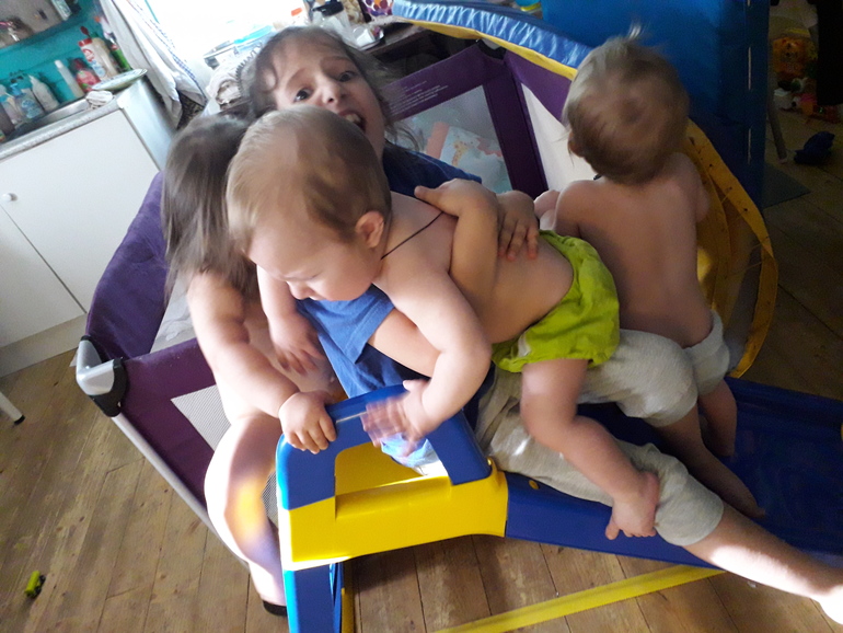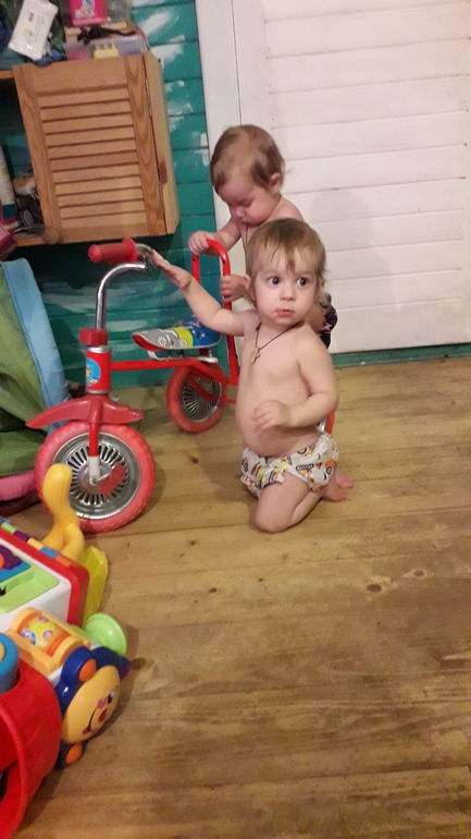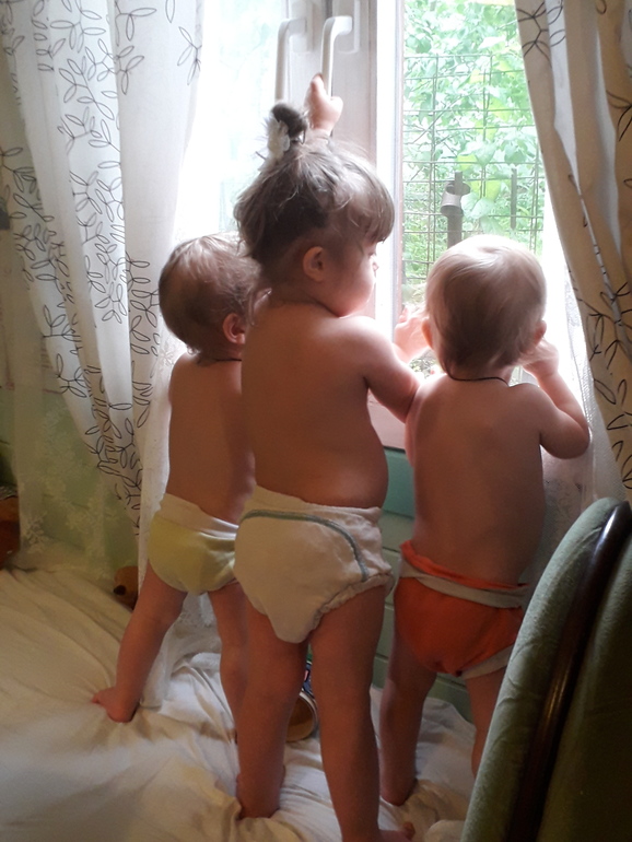 Что имеем-полуторагодовалых близнецов, похожих как две капли воды и гору многоразовых подгузников.