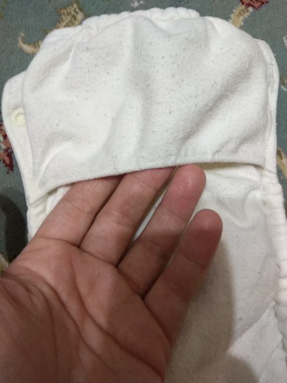У нас есть подгузник Wisemam с белым Pul-слоем сверху, похож на ваш, может даже выкройка такая же. Мне очень нравится посадка, на моем двухлетней отлично сидит.