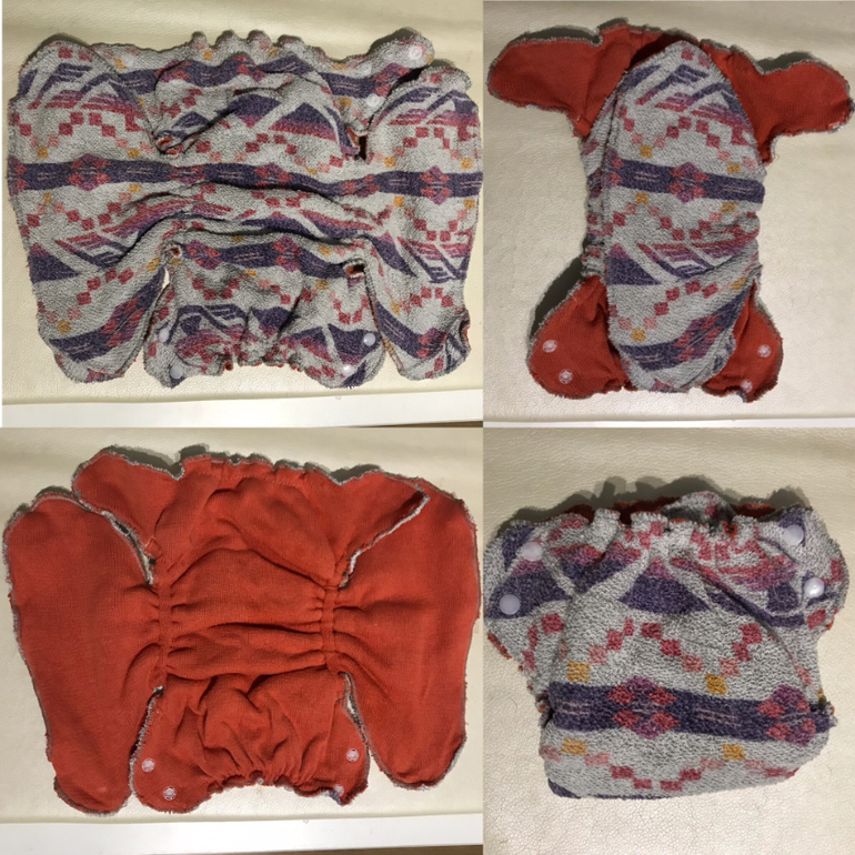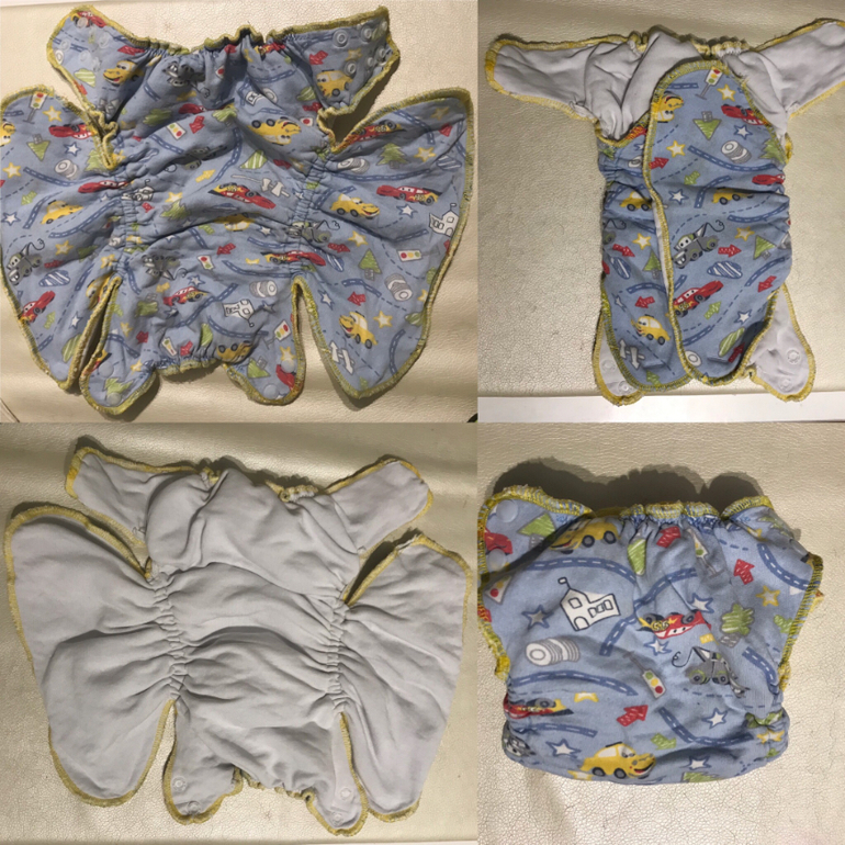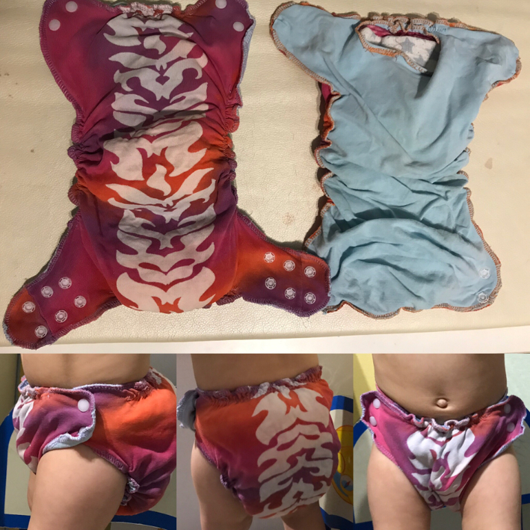 Сидят все одинаково, по-этому не фотографировала каждый отдельно. Уже решила не шить больше подгузов из фланели. Лучший материал трикотаж. Впитывает отлично, после стирки не нужно растирать, так как остается мягким. Старые футболки отлично идут. Если покупать ткань, то лучший выбор двунитка с начесом 100% хлопок, тренитка 100% хлопок петля тоже хорошо, но немного жестче. Тренитка с начесом почему то мне попалась плохо впитывающая пробовала делать вкладыши из нее - сколько не выстирывала так и не начали впитывать.