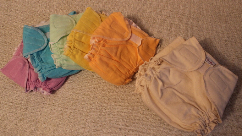 Итак, если с первенцем я очень любила подгузники с карманами, с вкладышами на кнопках, то со вторым ребенком меня стали жутко раздражать любые вкладыши вообще. Это же надо все разобрать, потом после стирки развесить, потом опять собрать. Тогда моей главной любовью стали подгузники со вшитым вкладышем и все в одном! Снял, кинул в стирку, повесил, снял, надел. Это очень круто облегчало жизнь. Правда, сохнут такие подгузники долго, а значит их надо много... ну я и купила... много)))
