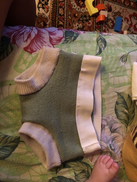Обновочка! (обсудим новую покупку)Однажды постирала мериносовые штанишки пиратские,свалялись они,погоревали и надели на куклу.И вот решила я из них тренировочные Сделать,вот что получилось,пока ещё наметала,не знаю,удобно будет или нет,время покажет