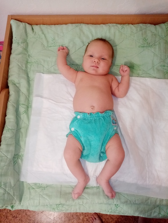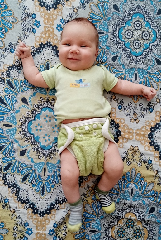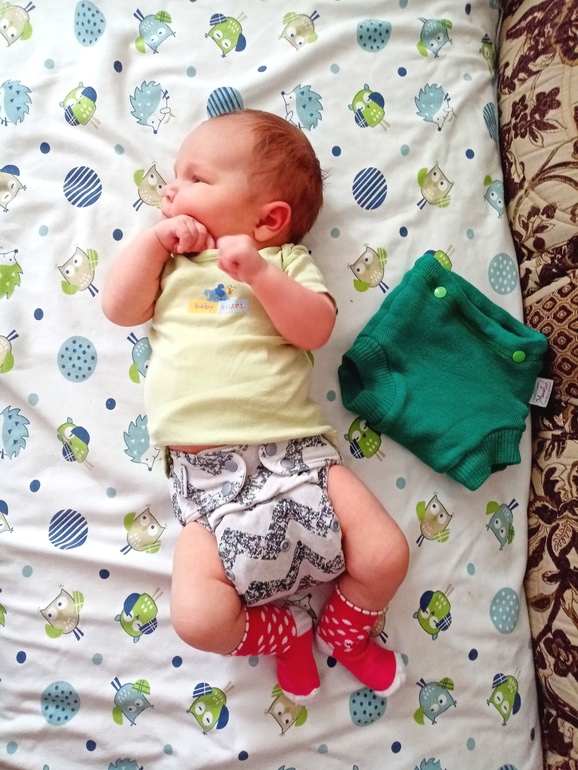 Ещё в фаворитах ecoposh от kangacare и хлопковые подгузник от wisemam. Сначала экопош носили с махровыми вкладышами mokosha, теперь носим эти три подгузника с префолдами, свёрнутыми горизонтально, с усилением в середине.