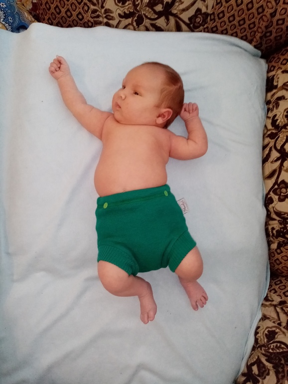На фото попали штанишки mamalino - это тренировочные в размере m, которые мы носим как пеленальные.