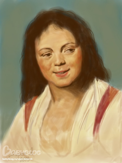 Муж вот такой портретик забацал на фотошопе. Я раньше и не ожидала что с помощью планшета и фотошопа может получится что-то такое! Первый опыт. )))