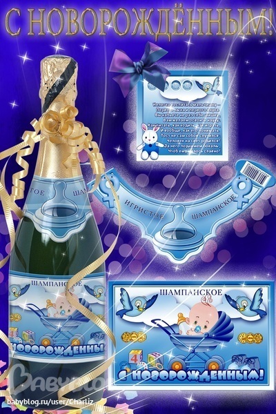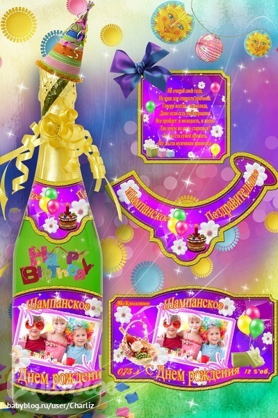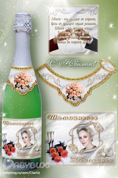 Комплект этикеток на шампанское состоит из 3х наклеек: