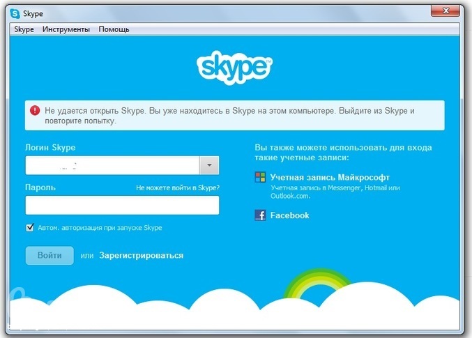 Зашла в диспер задач, закрыла скайп, запускаю занаво... нет результата. Перезагрузила комп, та же история. Уже и пароль сменила... Ничего... Первый раз с таким столкнулась...