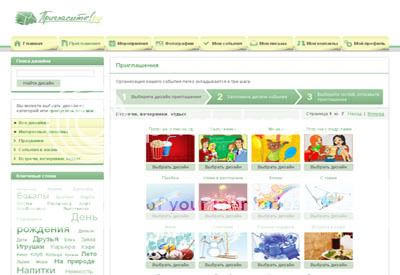 Праздничные дизайны, открытки и иллюстрации электронных приглашений разработаны профессиональными художниками специально для проекта. Благодаря внедрению на сайт веб-технологии ajax, приглашения быстро работают и ими удобно пользоваться.
