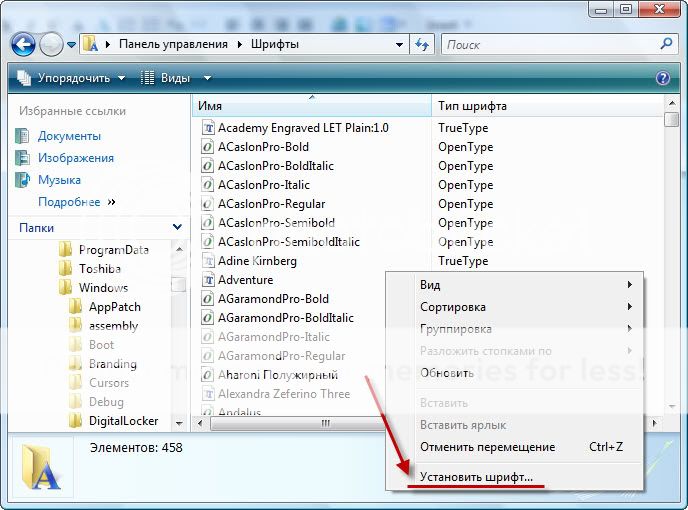 Для установки, просмотра и поиска шрифтов попробуйте пользоваться специальными программами! Мне очень нравится программа FontMassive!