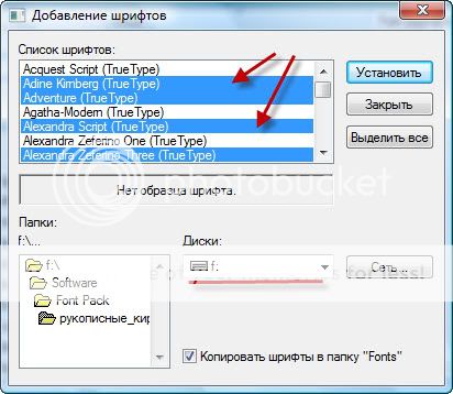 Выберите ту папку, куда вы распаковали скачанные шрифты, выберите нужные (или все) и нажмите “Установить”.