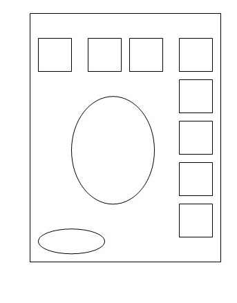 Квадратики - месяцы , овал - портрет, овал снизу - игрушки...