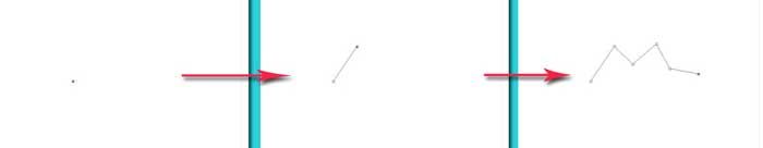 Затем необходимо переместить курсор на новое место, где должна располагаться следующая точка, и снова щелкнуть левой кнопкой мыши. Две точки соединяются прямой линией.