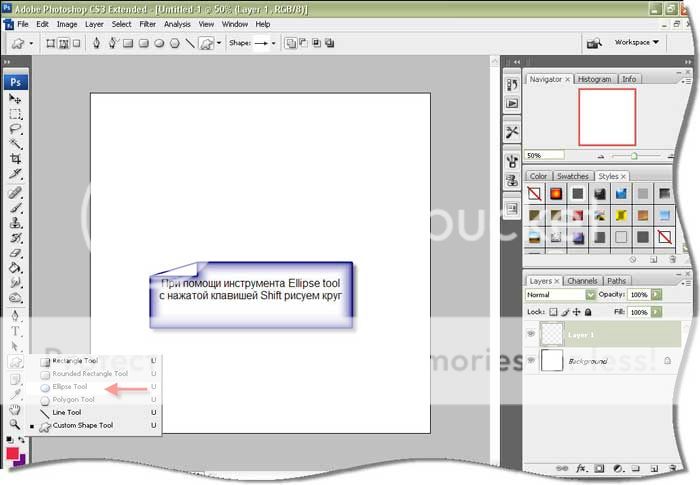 При помощи инструмента Ellipse Tool с нажатой клавишей Shift рисуем круг.