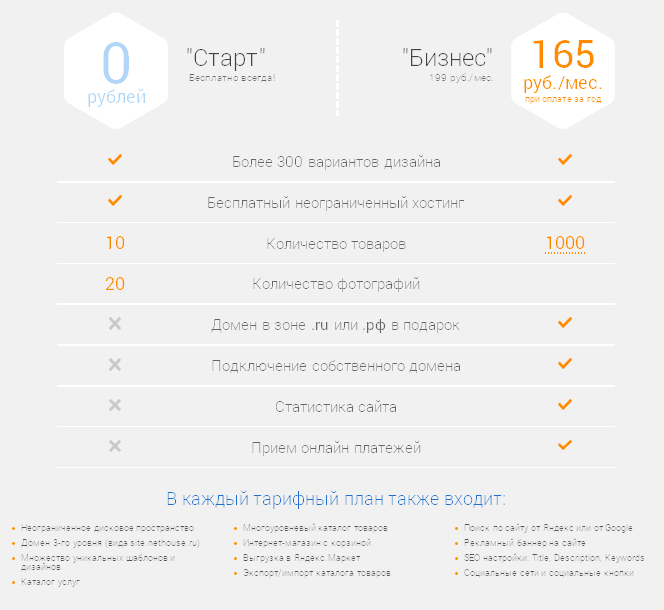 Есть 2 вида пакетов бесплатный "Старт" и платный "Бизнес".