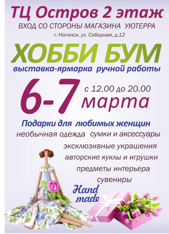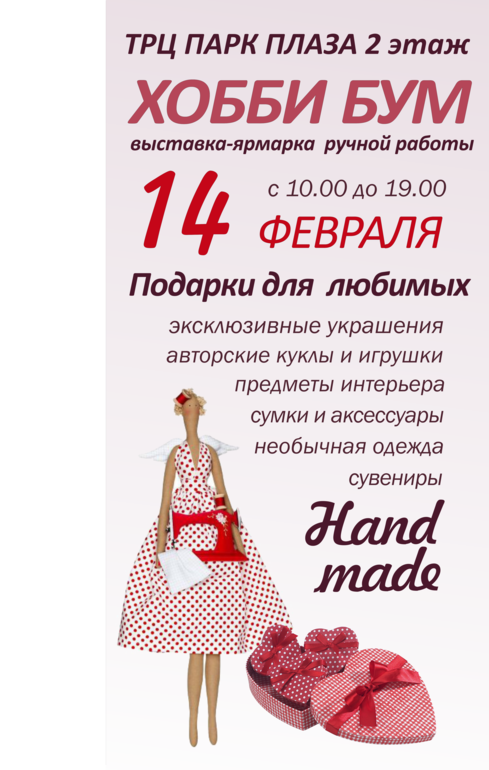 В том, что рекламу рисую для этого мероприятия. Рукодельных работ, нет не будет, но мы совместно в одной девушкой выпускаем наборы для шитья игрушки. Я версткой и обложками, инструкциями занимаюсь. Я мало что успеваю. Мне так кажется... :)