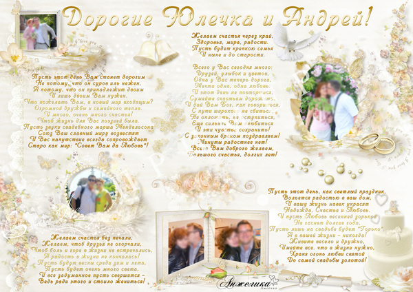 Если у вас свадьбы или у ваших друзей сделайте приятный сюприз в виде плаката с пожеланиями и фотографиями молодоженов: