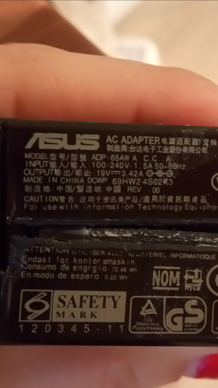 Ультрабук асус. Характеристики зарядки здесь по всей видимости (очень плохой видимости)
