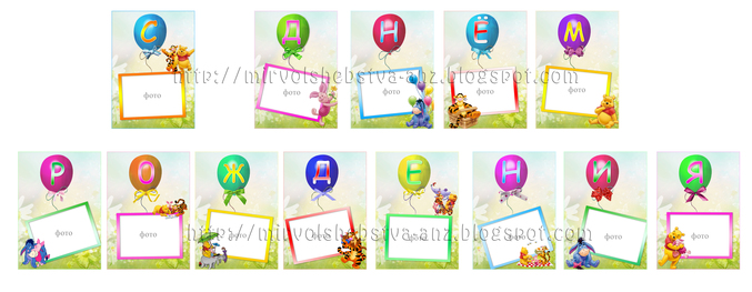 Множество видов плакатов - На кого я похож, Кем стану, Мои достижения , Мой день, Пожелания от гостей и другие