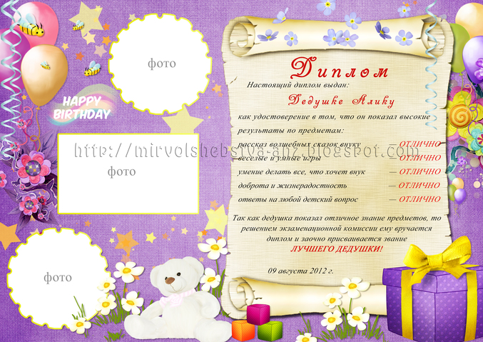 Гирлянды, паровозики, дипломы родным, наклейки на шампанское и украшения на шпажки, колпаки, приглашения и медали.