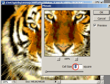 3. Далее применяем Фильтр- Оформление- Мозаика ( Filter- Pixelate- Mosaic)