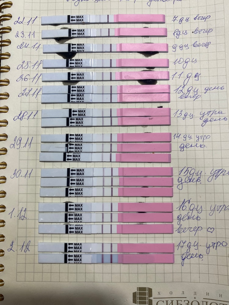 Сделала первый неделю назад ( 17 ДЦ) на нем были две практически одинаковые полоски ,потом тесты начали слабеть ( контрольная была бледная ) сегодня опять сделала ( неделя до М) и вот ,как это понять ????