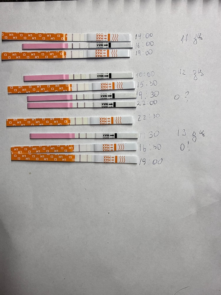 Искала на вб тесты на овуляцию и нашла 😉 дешево и сердито 25 штук 200 рублей. Называются lelux. Четенько показали пик утром, хотя правый яичник болел вчера и тест был почти положительный. Последние 4 вчера за вечер,5 нижний утро.Думала что пропущу пик, но нет в