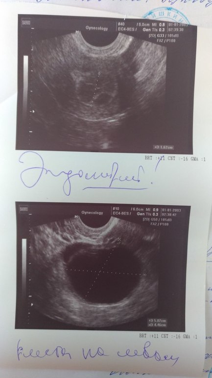на 10 дц я была на узи, фоллик пр. был 17х16х19, левый 19х15х19. Эндометрий 5,7.