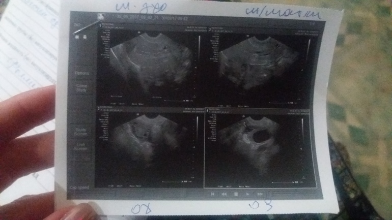 Сегодня 46 ДЦ. Киста левого яичника тут понятно. Что в матке справа за пятнышко и в шейке какие-то кисты в заключении написано. Врач ничего толком не сказал