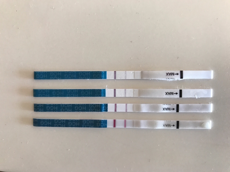 Девочки, а через сколько дней полосочки должны сравняться? Не слишком ли медленно ярчают? Тесты сверху вниз 11.06, 12.06, 13.06 утро,13.06 обед, 14.06 утро. Ил все нормально? Всего 4 дня как появляется полосочка вообще.