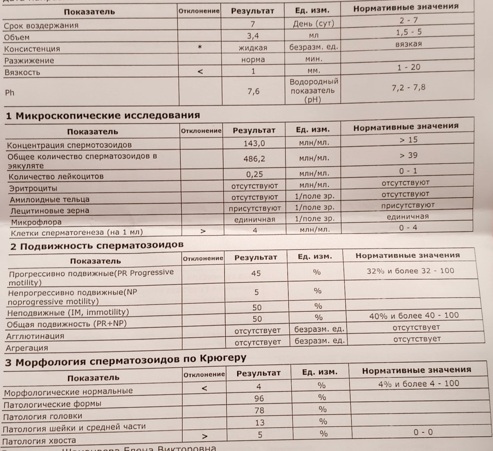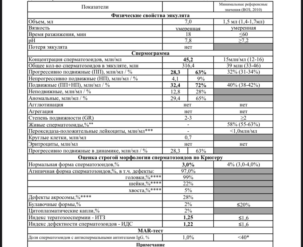 Добрый вечер всем. На днях муж сдал сг, очень переживаем, результат вроде бы не очень… в понедельник к врачу идем на консультацию, думаю, что надо будет пропивать ему какие-то витамины и тд. Он не курит, не пьет, питаемся правильно, но вот такой результат (( Поделитесь своим опытом и мнением по поводу сг ниже 👇🏻 , спасибо 🙏🏻