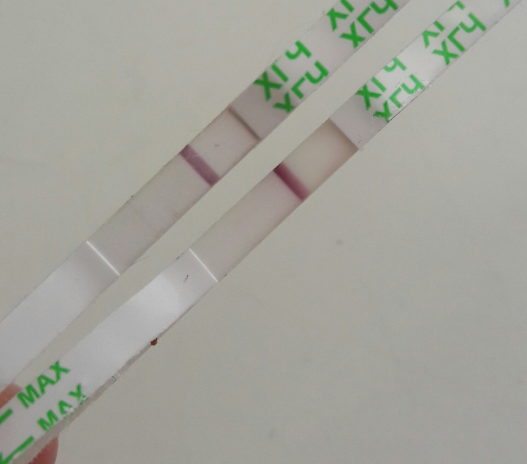 Кто-то их со мною видел, кто-то нет. Решили коллективным разумом, что это бхб. Сегодня что-то дернуло меня сделать тест. Вылезла заметная полоска. В живую вообще приглядывать не нужно (в отличие от предыдущих тестов). Вопрос в следующем: при бхб это нормально? и если это все-таки Б, какие шансы на то, что она будет развиваться нормально?