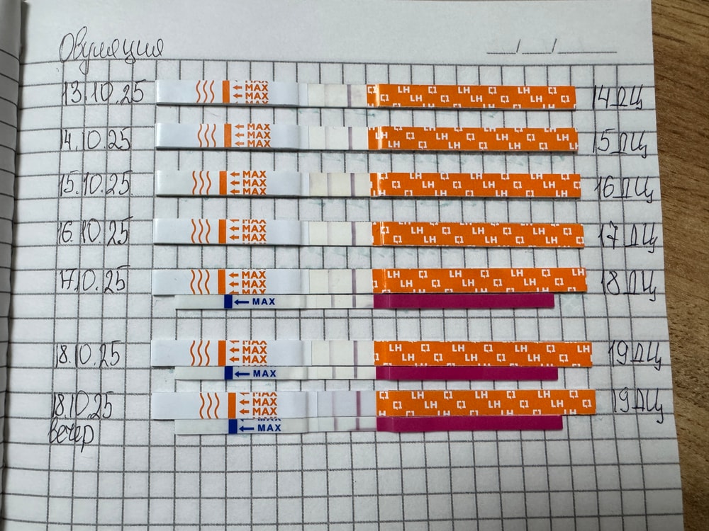 У меня небыло раньше опыта мониторинга овуляции с помощью тестов, и мне не понятно она была? Если не была то почему то тесты разных фирм показывают разный результат. На тех что маленькие как будто на 18ДЦ была овуляция, а на тех что побольше как будто и небыло не вовсе. С сегодняшнего дня делаю и утром и вечером. Помогите разобраться пожалуйста 😢