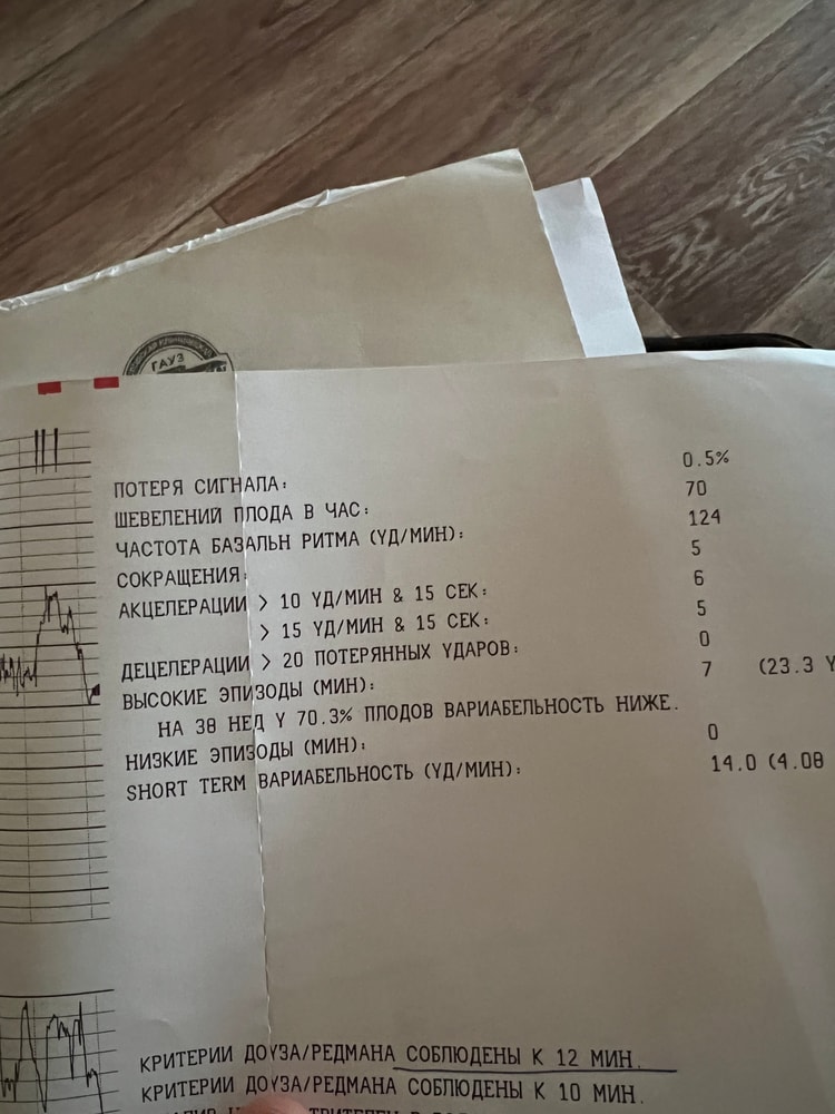 Кто нибудь разбирается и результатах ктг? Подскажите все ли нормально?срок 38,3