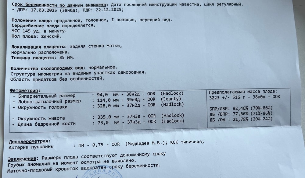 38 недель, Была сегодня на узи и параметры частей тела тела отстают на неделю. У кого было так? Чем закончилось?