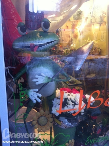 Лягухи, аисты, чихи, приметыДевчонки, 7 марта в окне цветочного магазина увидела это чудо. Делюсь с вами на удачу
